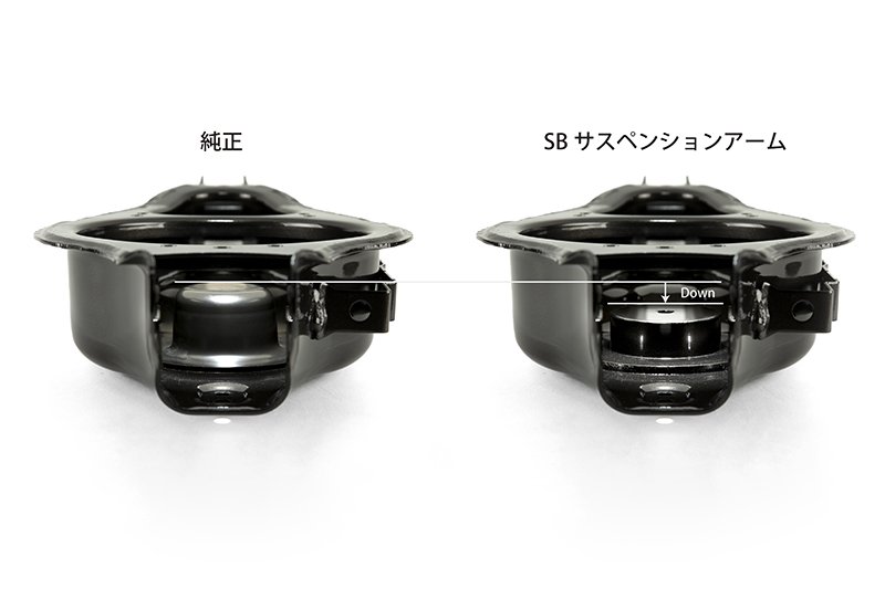 き上げ感)が強くな乗り心地の悪化になります。SBサスペンションアームを装着することによ
